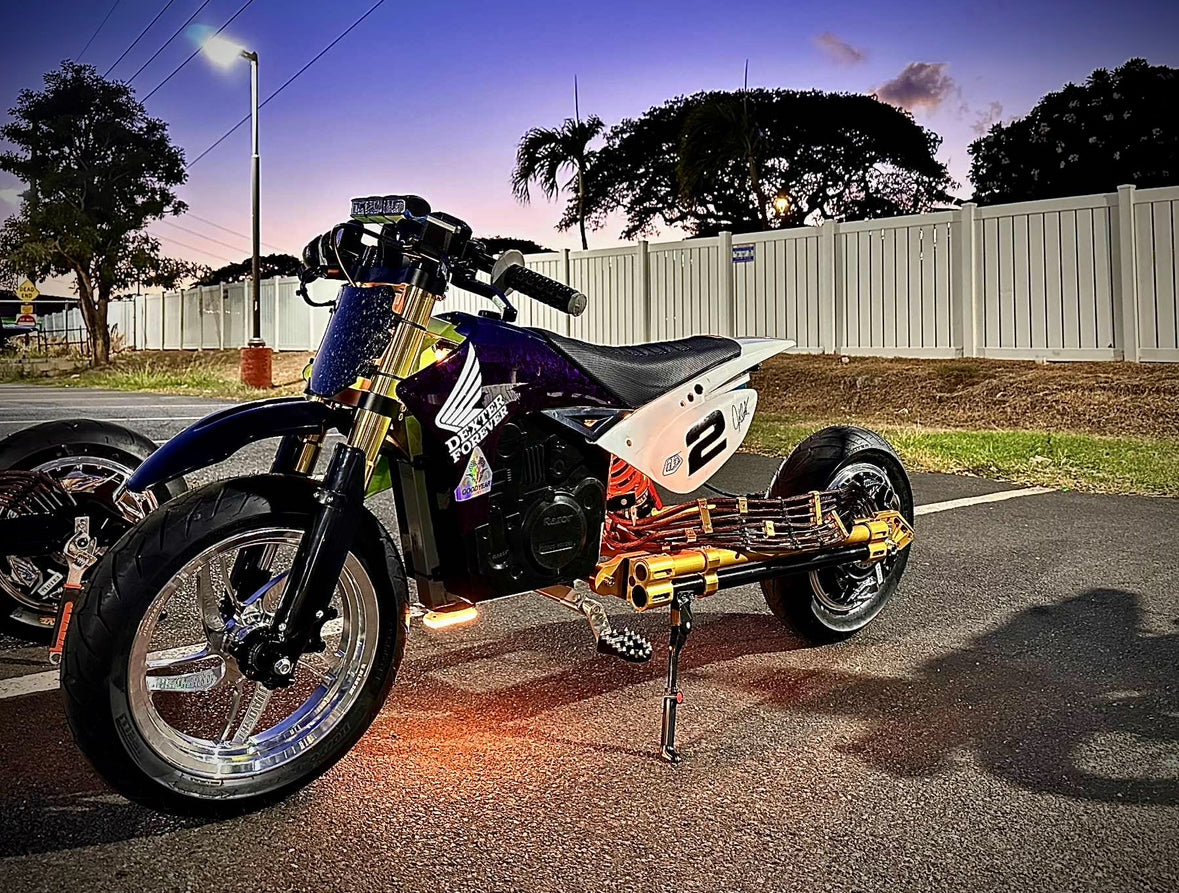 3) Pre-Bled 2 Piston Rear Brake w 200mm Disc & Hardware: 1800mm hose length, upgraded PINK pads, Folando Race Brakes (black on black), left hand rear CNC adjustable lever.