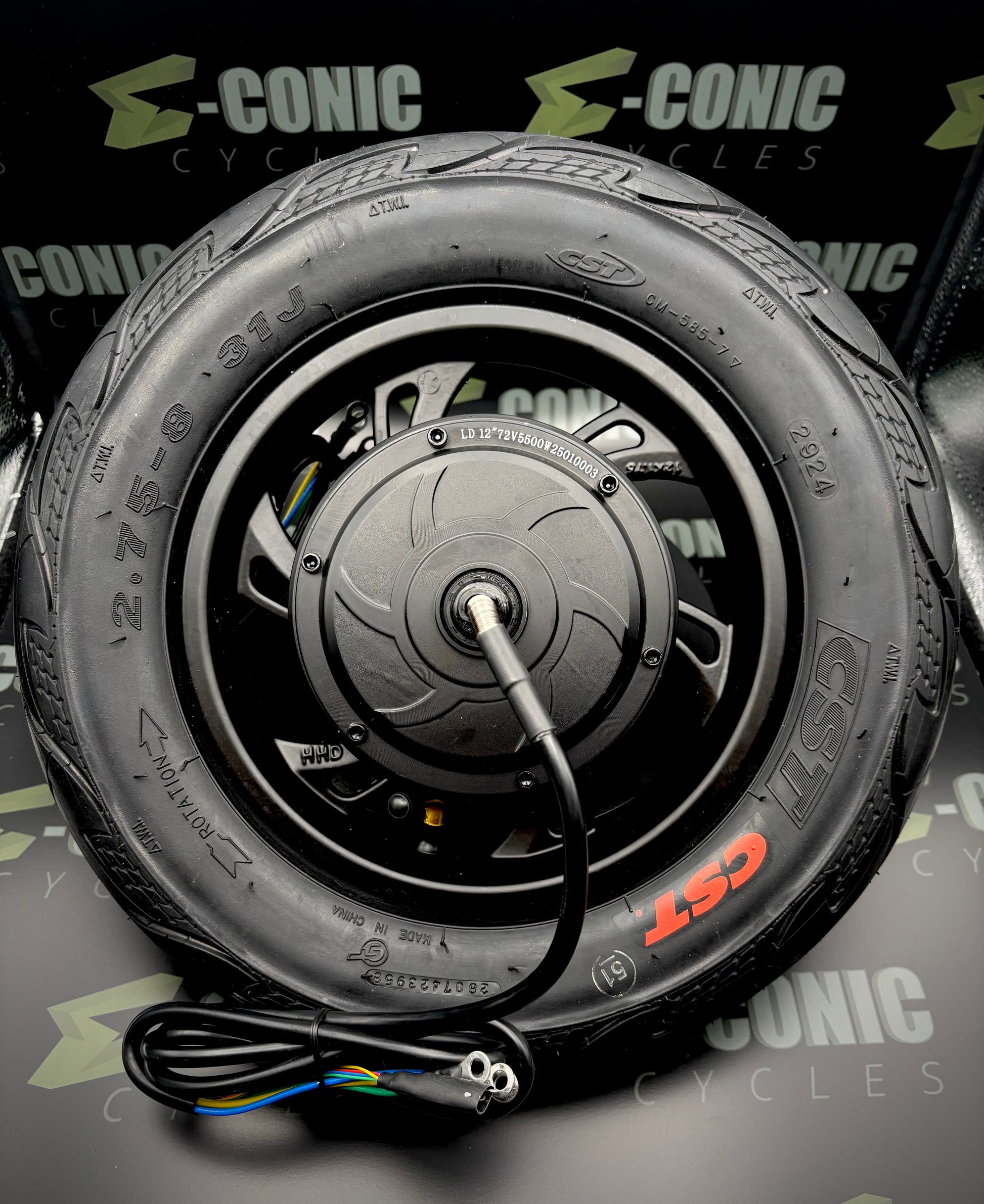 Motores: Motor de cubo de 12" (motor real de 8"), 72 V, 5500 W, entradas bifásicas con neumáticos CST 2.75-8 opcionales
