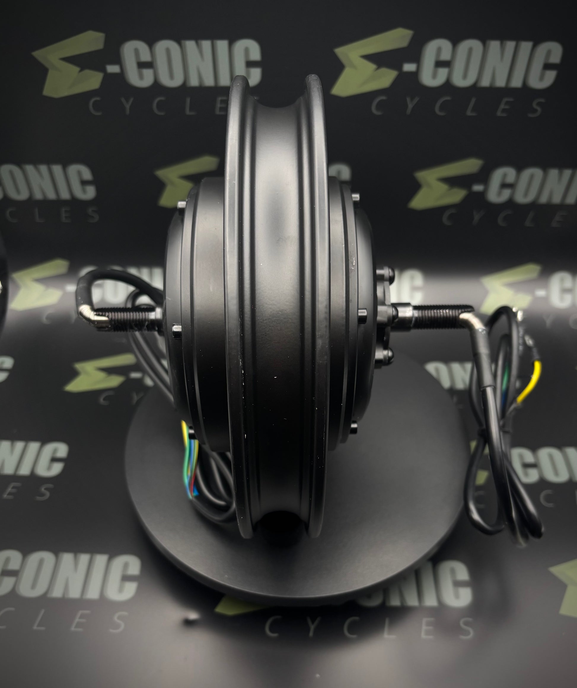 Este motor de buje de alta velocidad de 12 pulgadas (motor real de 8") con una potencia de 5500 W es el complemento perfecto para tu bicicleta eléctrica, especialmente para la Fiido Q1/Q1S (puntera de 125 mm). Con entradas bifásicas y un rango de compatibilidad de 36 V a 120 V, puedes personalizar tu bicicleta según tus necesidades. Simplemente combina los colores de los cables de fase para que los dos juegos de cables alimenten el motor con más corriente. Dos opciones: con o sin neumáticos CST565 de 2,75 a 8,00 pulgadas montados. Usa un compresor de aire para asentar los neumáticos, ya que no están inflados debido a restricciones de transporte.