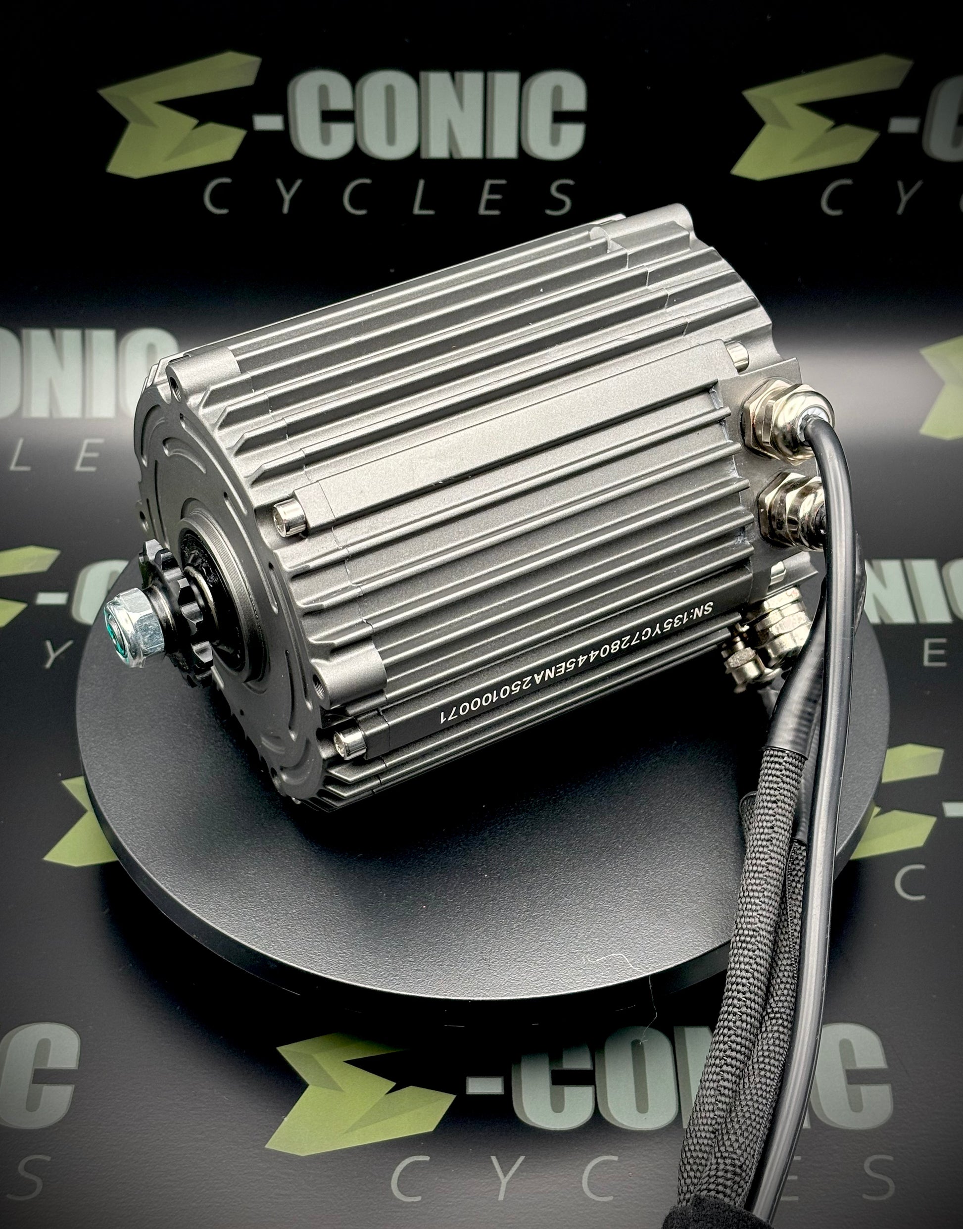 Se adapta bien al piñón trasero Rebel Gears n.° 35 (55 o 65 dientes) (OPCIONAL), FarDriver ND72450/ND72680 y la batería Amorge de 72 V 32 Ah (200 A continuos). No exceda el tamaño del perno del motor M6 x 16, ya que podría dañar la tapa del motor, lo cual no está cubierto por la garantía. NO SE RECOMIENDA su instalación en soportes de basculante extendidos, ya que podría dañar las roscas y no está cubierto por la garantía. Móntelo en una superficie sólida, como una cuna o soportes de chasis.