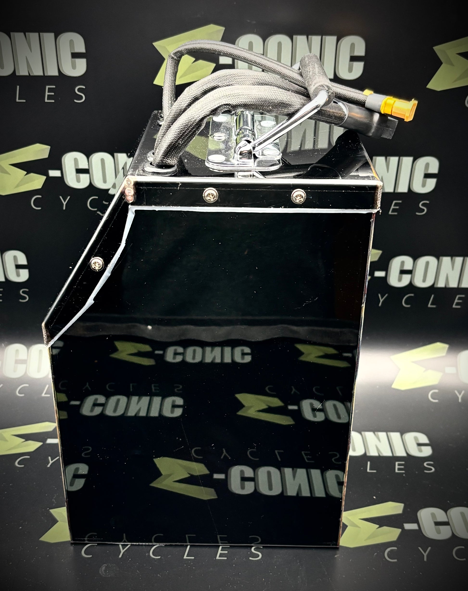 V1 of this Battery Pack (v2 will use flush screws): there's a small possibility that the top 4 screws on the lid may (or may not--dependent on how tight the frame spec is) prevent easy sliding in of this pack into the frame. You will need to either replace the 4 regular screws on the lid (two screws on the left & right of the handle) with flush style ones OR (easiest) simply remove them and fill the hole with silicone to keep water out. Screws are M4 x 4mm and you need the countersunk option. This post will be rather fluid as I have the needed screws being delivered later this week. If all goes as planned, I will include the screws with the battery shipments.