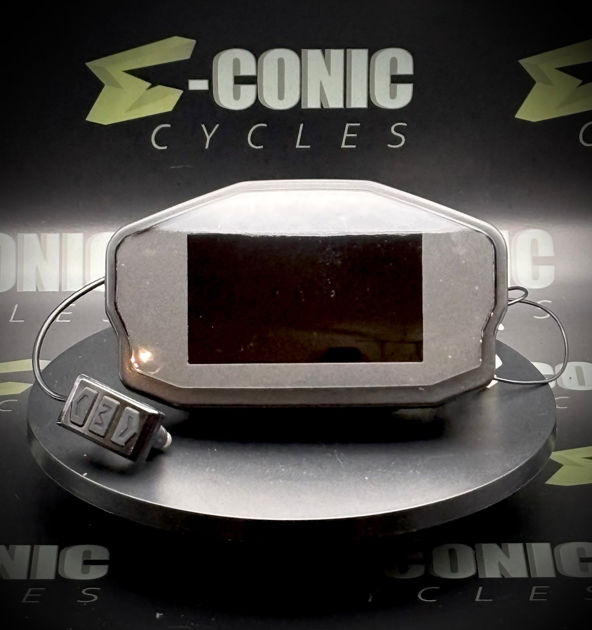 Basic TFT Display (description in pics) with optional metal mounts (2) for 22mm or 31.8mm bars. Includes rubber insert to adapt from 31.8mm to 22mm. Three M6 nuts required at this time.