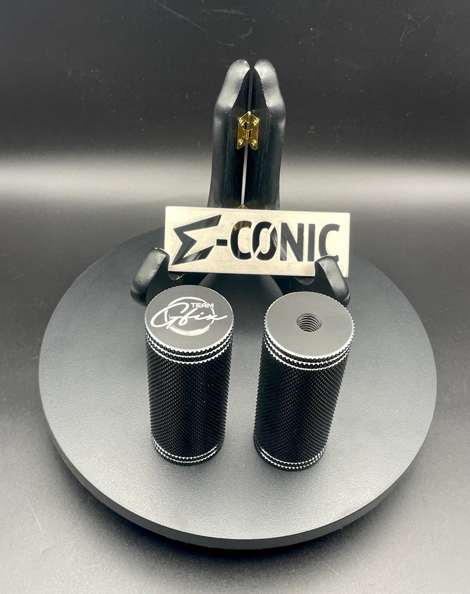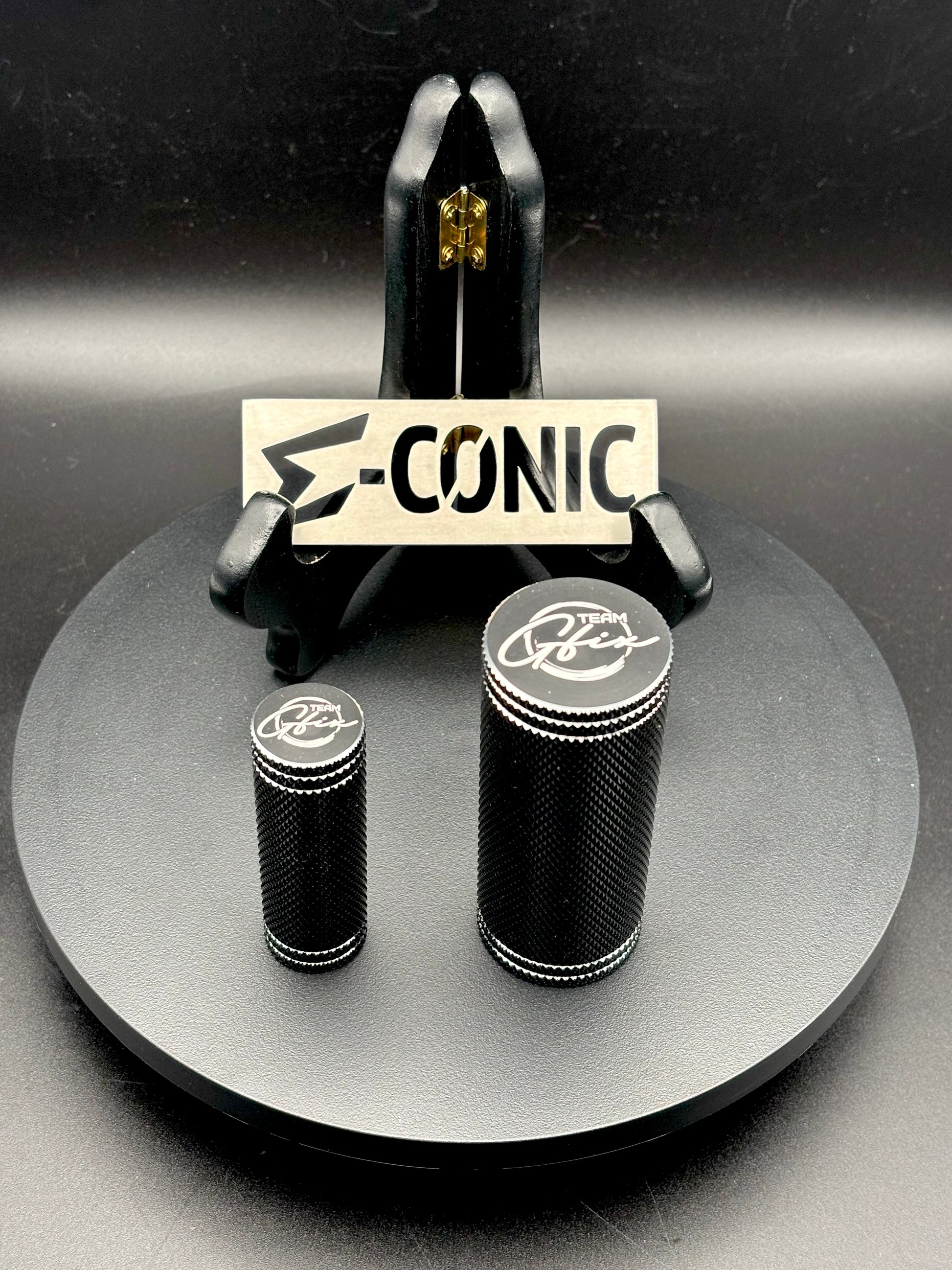 Works on Fiido Q Series & Emove Roadrunner. Stock axle peg is a M10-1.0 threading and so are these peg sets (exc GFix and CF silver / gold models--peg axles for those are available for purchase: M10-1.50 threading). All of the pegs are 3" in length, EXCEPT for the Carbon Fiber Premium Sets which are approx 4".