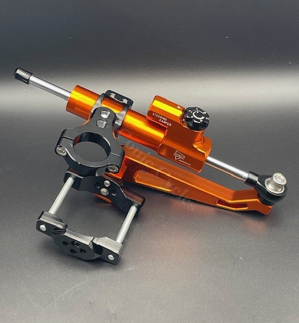 The damper has essentially two clamps: one attaches to the head tube and the other will attach to the steering tube in place of a few spacers. If your setup doesn’t have room on the steering tube, (rare), this will not work.