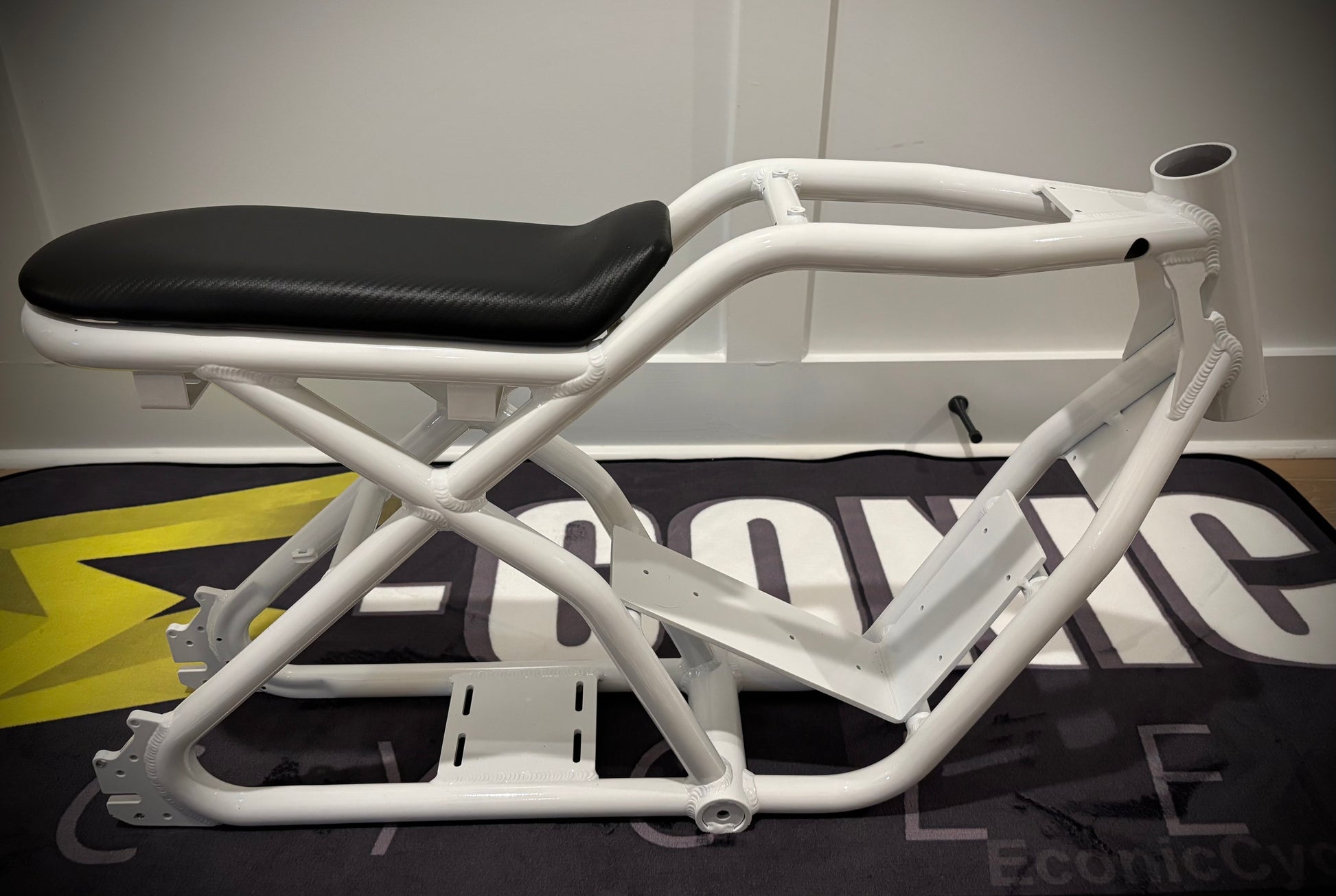 Rare Q2 Style Frame with Lowered Seat & 10" Front Rim--ready to build! Limited Time Only! Q2 Extensions available (limited number on hand)! Pair up a set of 14/16 forks and 14" (10" actual) Hub Motors!