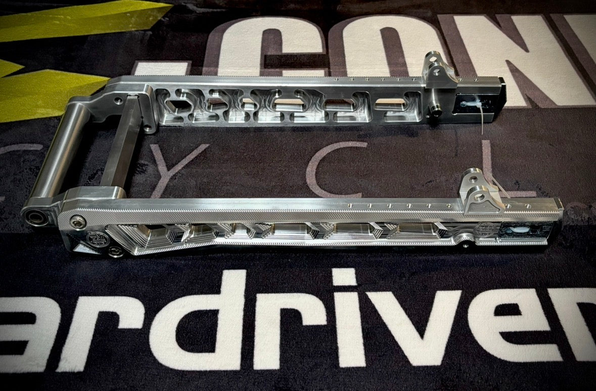 Looking for an Aluminum (7075) Extended Swing Arm (approx 8”) for your e-Moped (Fly, NIU)? This beauty will accommodate a 12" QS hub motor and includes torque arms and adjustable shock mount tabs. ***Only ONE Available***