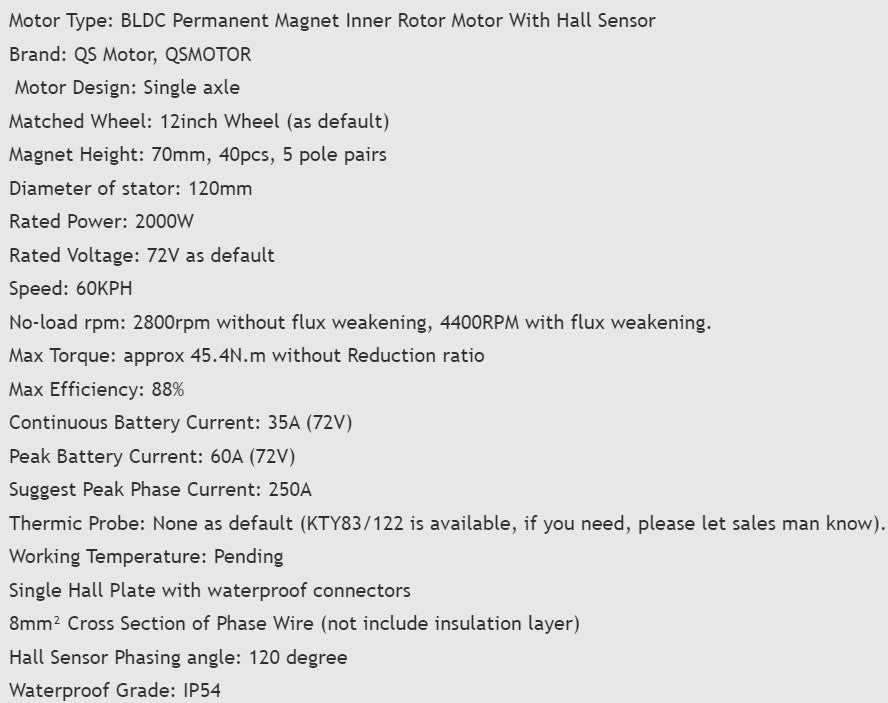 This torquey mid drive motor is perfect for any electric bike enthusiast looking for performance. The QS120 v1 2kw motor boasts a voltage of 72V with a nominal power handling of 2000w, providing a considerable boost to smaller bikes. Made from durable aluminum alloy, this motor is built to last and is compatible with a variety of bike types. Featuring hall & temp sensors along with a 428 sprocket (14T), this motor is an excellent option for those looking to take their electric bike to the next level.