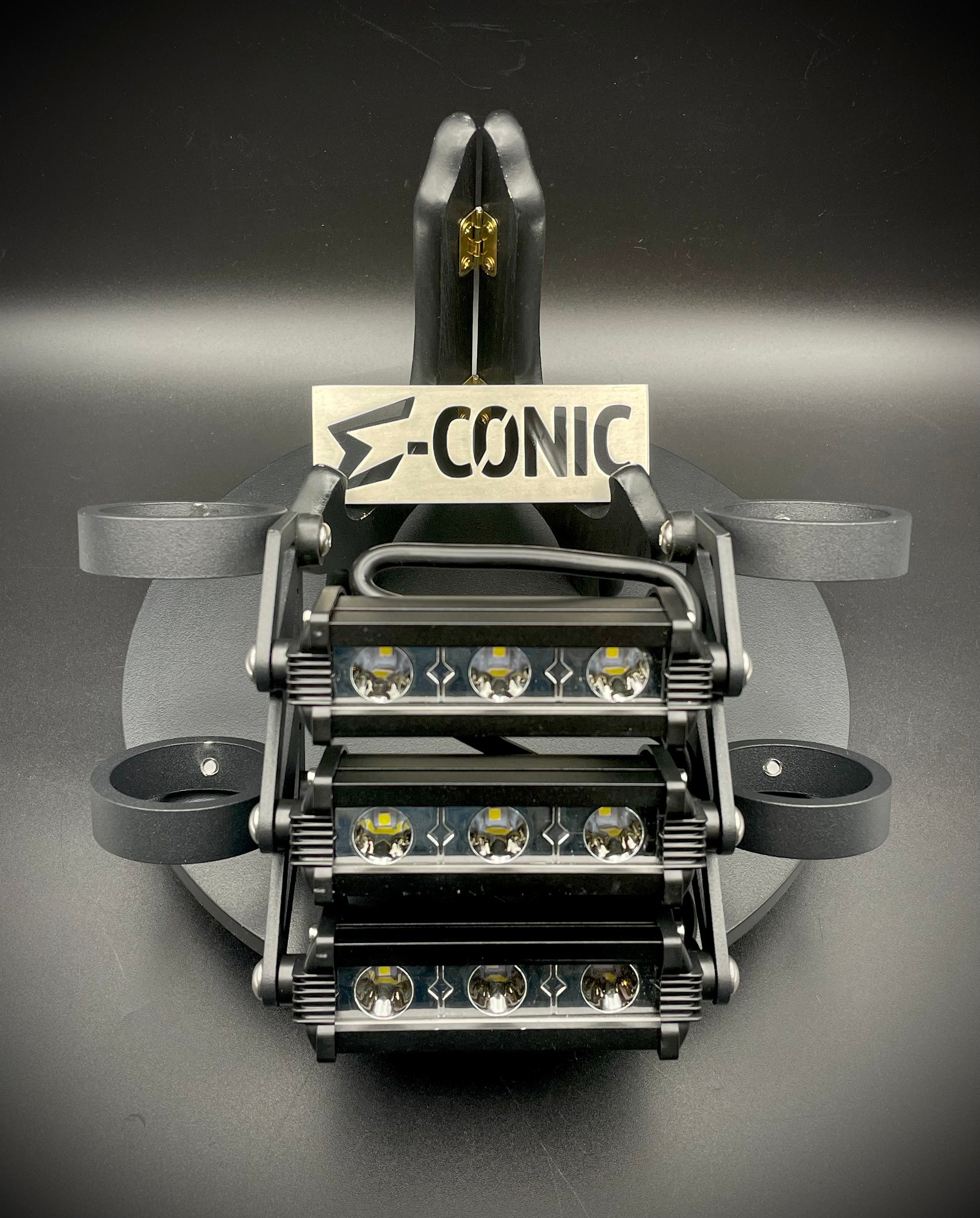 Want to add a splash of style to your Fiido Q Series / Emove Roadrunner Dual Crown Forks (41mm Tubes)? This kit brings 3 spotlight assemblies, and a sleek mounting system to accommodate 41mm tubes with 135mm drop outs--commonly found on Fiido, Emove, and other 12" or 14 / 16" forks.