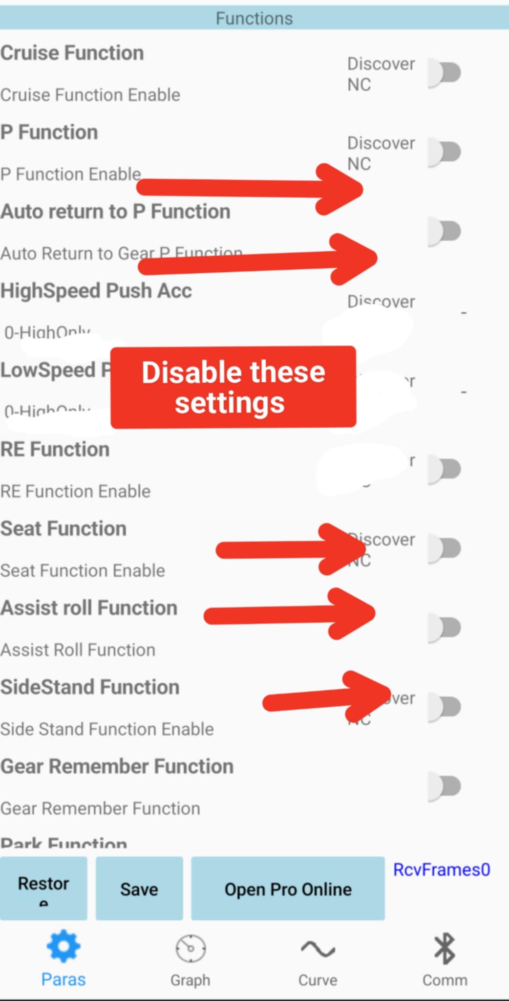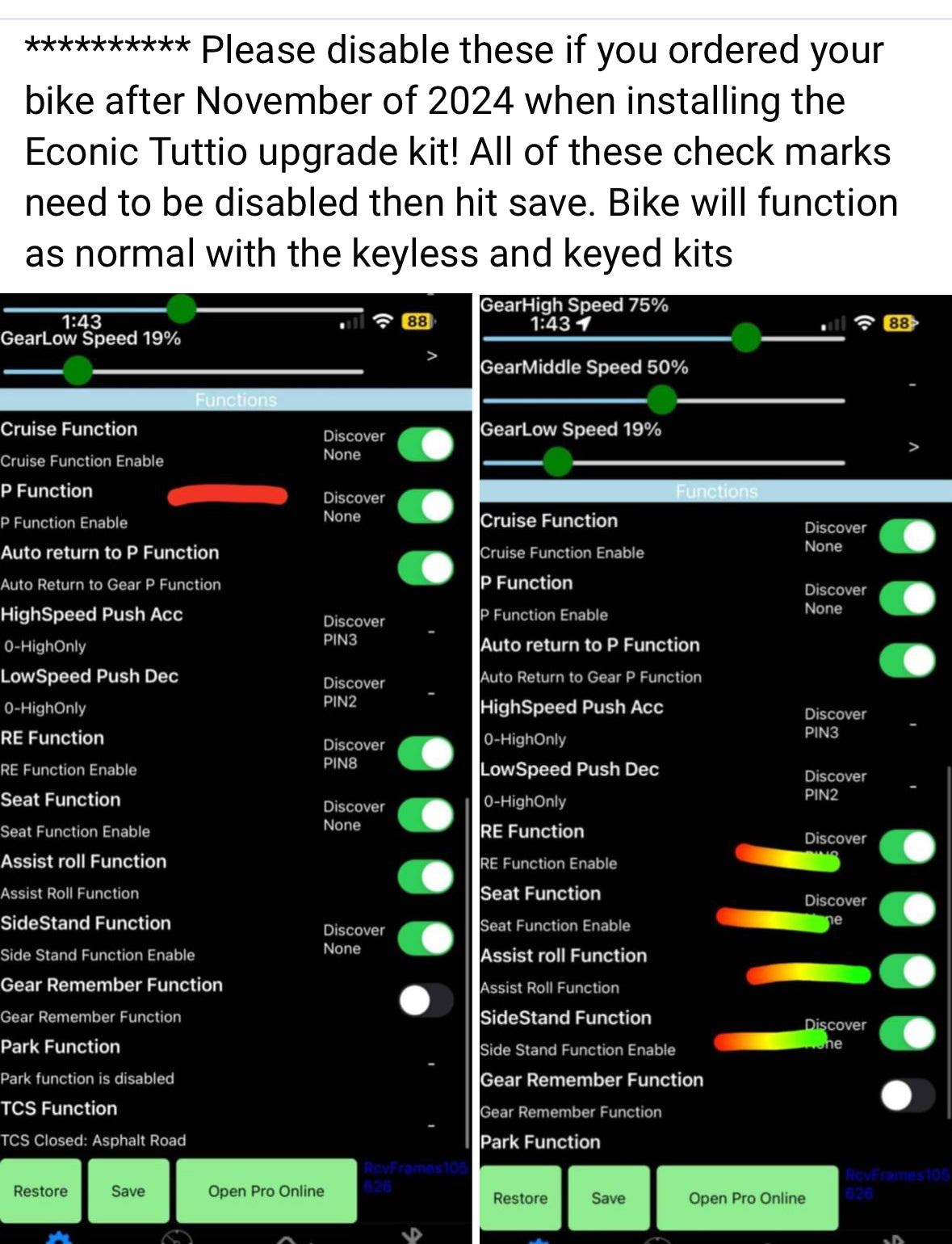 7/23/25: Review the pic area for directions on what to update in the app. Otherwise, aftermarket throttles will not respond. Also go to Open Pro, scroll down to display section, and change Special Frame to 21. Hit save.